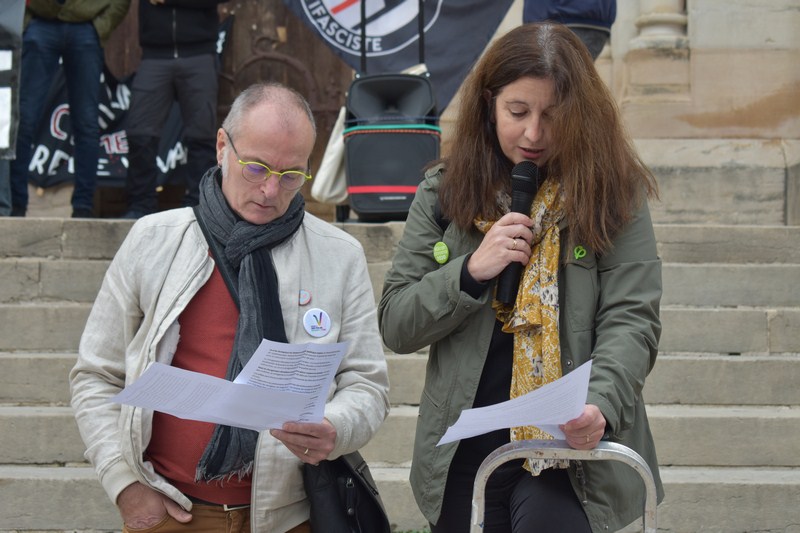 Trois cents personnes parties de la place Saint-Pierre après des prises de paroles de LFI avec Catherine Amaro, Olivier Leprévost (co-chefs de file LFI sud Bourgogne) et Stéphane Kerckhove (délégué général d’Agir pour l’environnement). La manifestation a pris l’avenue Edouard Hérriot jusqu’au carrefour de l’Europe pour un retour en passant devant l’Hôtel de ville côté Saône direction du Pont de Saint-Laurent où une prise de parole fut faite par Eve-Comtet Sorabella, conseillère municipale d’opposition.