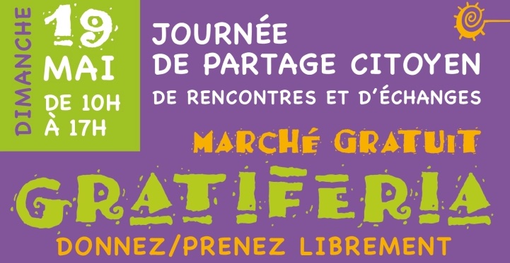 Attention : le dimanche 19 mai la Gratiferia commence à partir de 10 heures ! Pour ne pas favoriser les seuls arrivants du début, elle sera régulièrement réapprovisionnée en fonction des objets reçus la veille et dans la journée. En attendant l’ouverture, si vous arrivez avant, vous pourrez accéder à la buvette de la journée de partage citoyen.