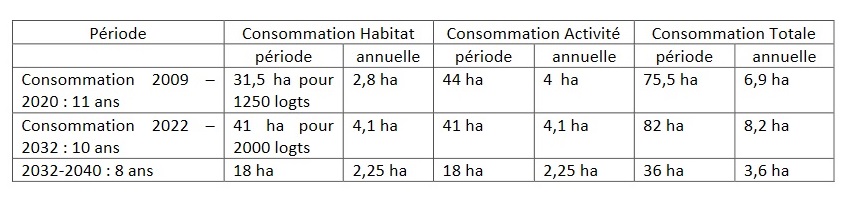 Venons-en maintenant à la consommation d’espace naturels au profit de nouvelles constructions prévue dans ce projet de PLU, et que la commission d’enquête a synthétisé dans le tableau ci-dessous :
