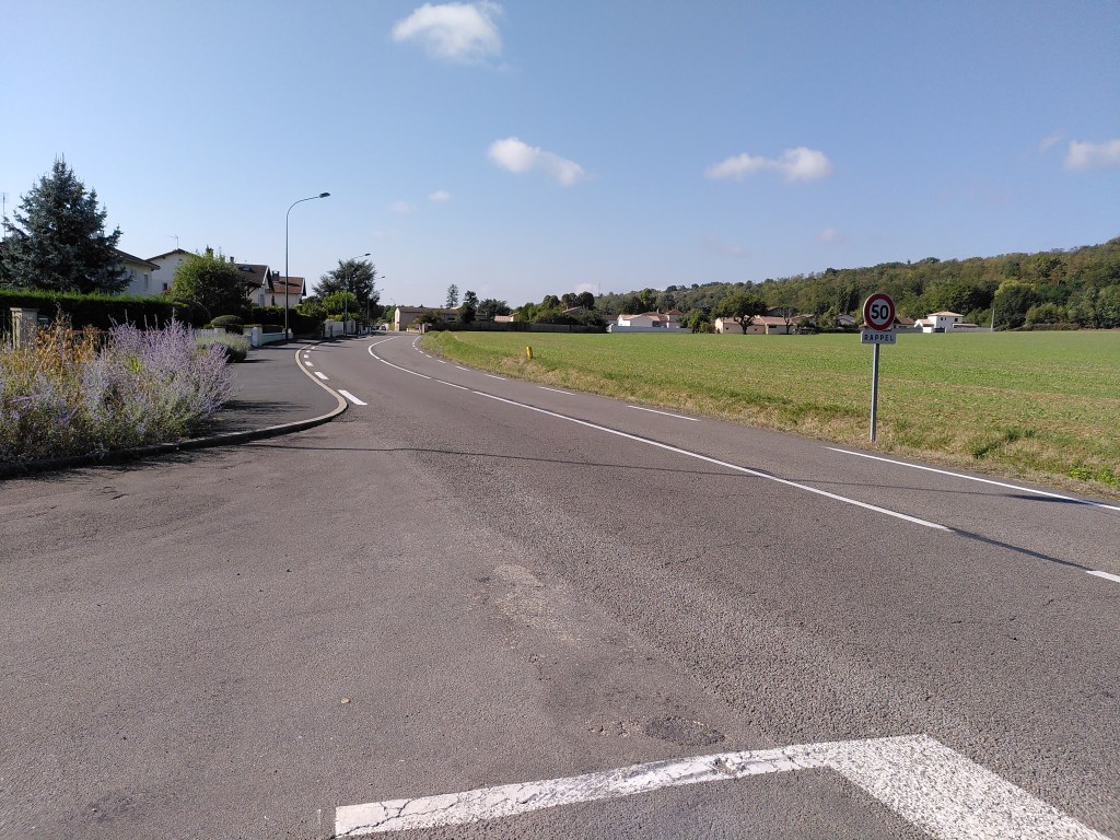 En poursuivant vers Mâcon la déconvenue est la même. Après le pont de l’A40, je traverse une nouvelle route et après 50 m… plus rien. Du tout. À l’entrée de Sancé, il faut désormais poursuivre sur la route au milieu des voitures. Même limitée à 50 km/h, leur vitesse peut décourager bon nombre de cyclistes. Dans le bourg, la limitation passe à 30 km/h et l’on ressent moins le besoin d’une piste séparée de la route. Jusqu’à ressortir du village où les automobilistes accélèrent à nouveau.